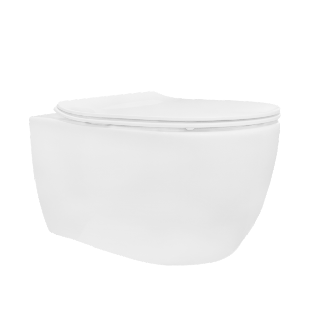 Cuvette WC suspendue PERLA Rimless au design arrondi et épuré, en porcelaine blanche ou noire. Livrée avec abattant soft close thermodur RAY et visserie de fixation. Certifiée EN 997 / EN 33.